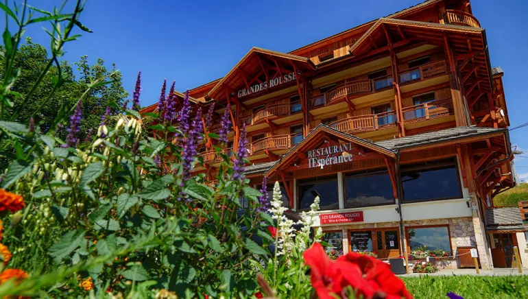 In front of the slopes or hiking trails, and in the center of the resort, the Grandes Rousses hotel has a unique location in Alpe d'Huez. Perpetual renewal, a recent extension endows this emblematic hotel with a new ski-in ski-out restaurant whose terrace offers an outdoor heated swimming pool.Created in a cozy and elegant atmosphere, the hotel invites you to experience the unique experience of a modern mountain-style chalet, while offering vast spaces where everyone finds their place: generous lobby, children's playroom, spa, fitness, ski-shop, conference rooms, reception & wedding of 230 m² modular in 4 independent spaces, 4 catering outlets, coworking space and projection room. Valet and porter service, private shuttle, concierge, covered parking complete the services of this beautiful hotel.