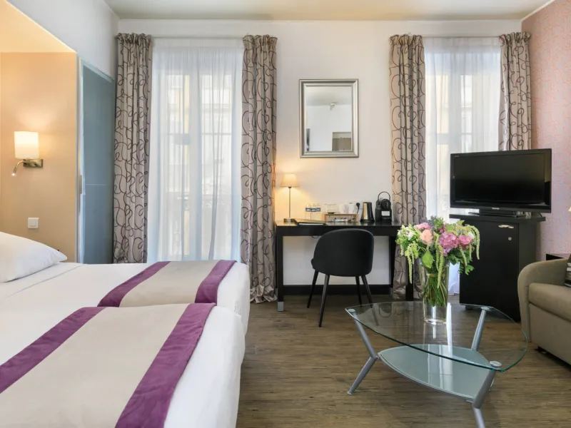 Completely renovated, the hotel offers 52 comfortable rooms. Awarded the Green Hotel label, the hotel makes every effort to protect the environment (selective sorting, renewable energy, eco-friendly products, etc.).To continue its environmental approach, the hotel has three beehives on the roof.