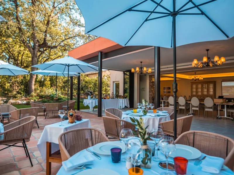 The philosophy of chef Benjamin Bourgoin, a master restaurateur, is reflected in his gourmet dishes, based on fresh seasonal produce sourced mainly from local producers. Enjoy the view from the lovely summer terrace by the pool in the heart of a Provencal park.