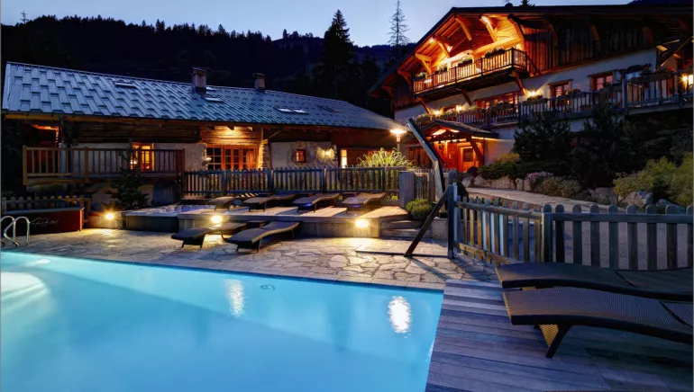 In the heart of Beaufortain, connected to Les Saisies, your Traditional Hotel-Chalet with 8 rooms and 4 suites in the mountains. Heated outdoor swimming pool, jacuzzi, sauna, hammam, massages and a good "Maître Restaurateur" table to enjoy facing Mont Blanc.