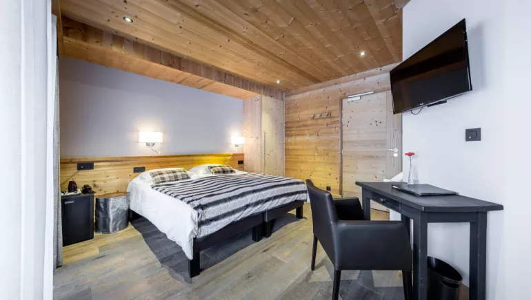In a welcoming atmosphere, you will be nestled in a mountain chalet setting, with a refined decoration, ideal for resting.These Suites have been designed to preserve everyone's privacy with family or friends... with space in each room equipped with a desk and TV.