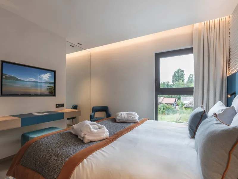 The 4-star Rivage Hotel & Spa is located in Annecy, 2.1 km from the Palais de l'Isle and 2.2 km from the Château d'Annecy. The hotel is close to several popular places of interest, such as the Pont des Amours, about 1.7 km away, and the Bonlieu cultural centre, about 1.8 km away. You will also be close to popular attractions such as the art school, the town hall and the Annecy courthouse.All of the hotel's rooms have a flat-screen TV. Each room is equipped with air conditioning and most of them also have a balcony.