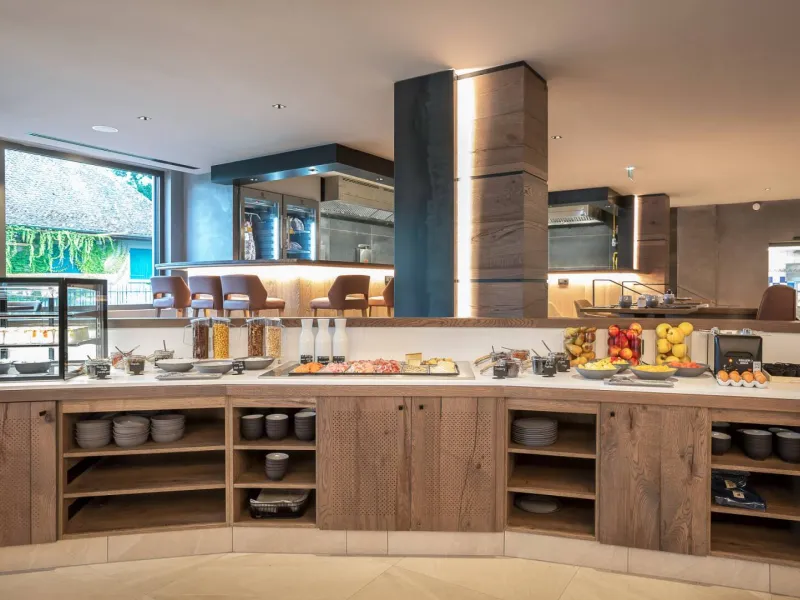 Every morning you can enjoy a buffet breakfast on site. The hotel has a restaurant "Le Ricochet" open for lunch and dinner, with a terrace overlooking Lake Annecy.