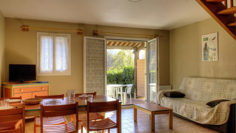 Stay at the foot of an Alpine village in the Vésubie valley, Mercantour surrounded by chestnut and larch trees. Set of 8 adjoining communal gîtes located in the Puey district. Ideal for meeting up with several families or friends while maintaining privacy by reserving several gîtes. Gîte Dahlia is adjoining Gîte Cyclamen (4104) and Eglantine (4106). Leisure park nearby, shops and swimming pool (in summer) in the village. The Col de Turini road (12km) and its numerous bends are famous in the automobile world. In fact, every year in January the Monte Carlo Rally organizes one of its specials there. 15km away, many activities await you in summer and winter at the Camp d'Argent station, and particularly around the Authion massif. 12km also to reach the spa resort of Berthemont les Bains.Dahlia duplex gîte. Ground floor : Entrance, covered porch. Living room with kitchen area 23 m2 with 1 sofa bed (140x190), TV with indoor antenna. Independent WC. 1st floor : 1 bedroom 13 m2 with 1 double bed (140x190) & 1 single bed (90x190). 1 Bedroom 9 m2 with 1 double bed (140x190). Bathroom with toilet. Covered terrace. Private enclosed garden (8 m2). Electric heating. Charges included. Tourist tax extra. Car park.