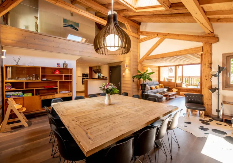 14-person duplex 180m². 5 bedrooms, 2 balconies. South-facing, views over the entire valley.Fully-equipped kitchen opening onto living room: fridge, oven, microwave, hood, ceramic hob, toaster, electric kettle, blender, juicer, Nespresso and filter coffee machines, dishwasher, washing machine and dryer. Two raclette and two fondue machines.