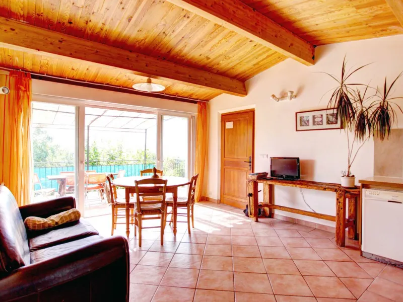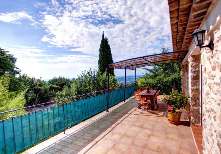 In the heart of the medieval village of Saint-Jeannet, this small single-storey house has a very large terrace with a view as far as the Cap d'Antibes. Shops and restaurants less than 5 minutes walk away.1 double bed 160x200 - 2 single beds 80x190, possibility to assemble them.