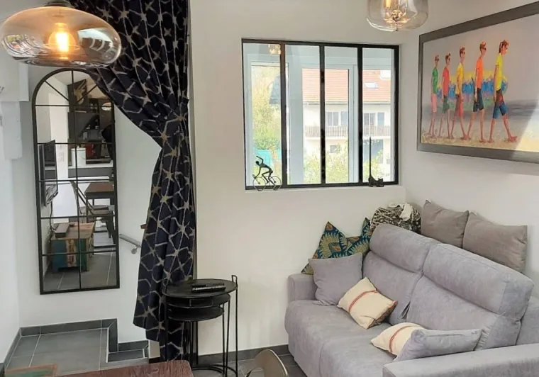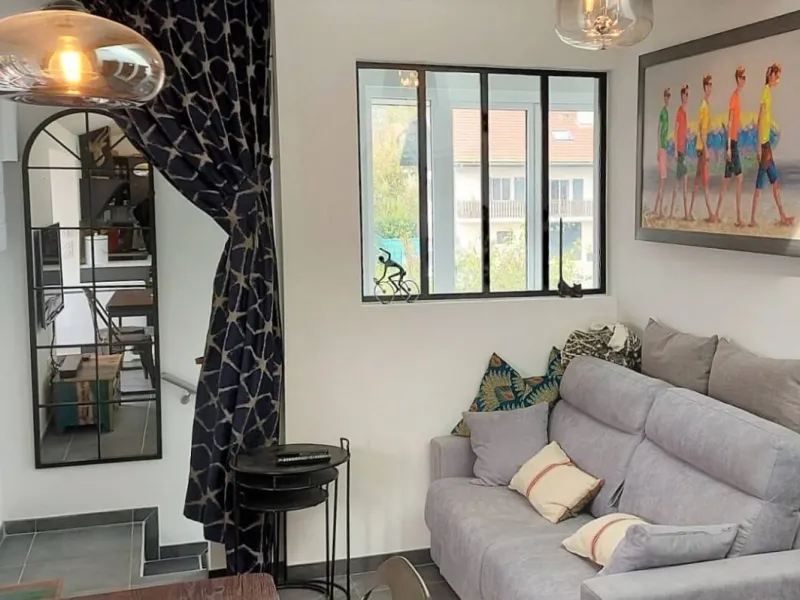 Composé d'une chambre avec lit Queen size, une cuisine entièrement équipée et ouverte sur un séjour cosy et une terrasse bien exposée avec transats. Vous aurez une place de parking privative à l'intérieur de la propriété. Vous êtes à 10 minutes en voitures de Annecy centre (Bonlieu et vieille ville) et 6 minutes voiture (15 minutes vélo) des plages du petit port et de l’Imperial.Opening