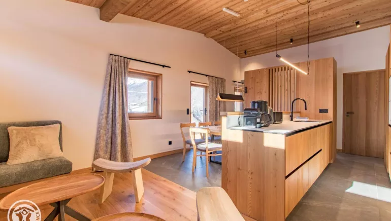 Opposite the Thônes valley, south-facing chalet comprising 2 comfortable apartments. Gîte (29 sq. m.) on 1st floor: terrace, double bedroom, showeroom/WC, kitchen/living room (double sofa bed). Renewable energy (wood-fired heating, solar heated water). Free access to fenced garden (children's games, swimming pool). 10% reduction for stays of 3 weeks. Hotel-style services on request (take-away meals, cleaning, bed et house linen hire). Free shuttles to La Clusaz et Le Grand-Bornand. Only 1 pet allowed. Free access to hot tub, sauna, hammam, Jacuzzi, massage room at the 'Chalet à Bulles' next door to the 'Chalet Chantoiseau'.