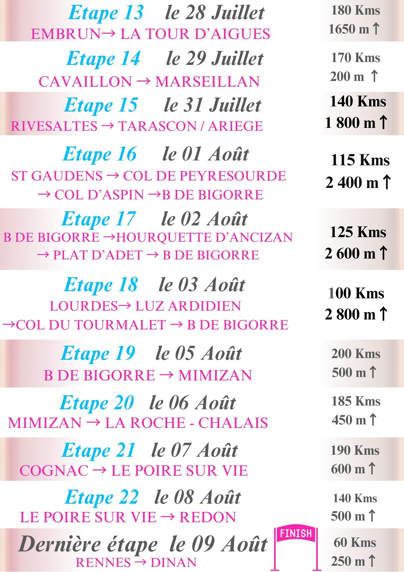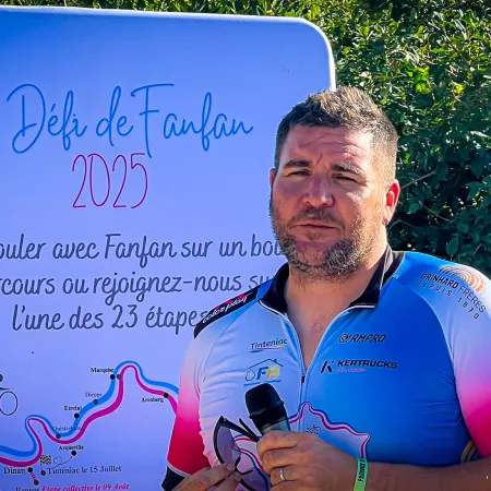 Sponsored by Bernard Hinault, Fanfan rides for a cause close to his heart: the fight against cancer. Each pedal is another step towards raising awareness and funds against this disease that has touched his family. Her commitment and determination are a source of inspiration to all those who follow her undertaking. At each stage, the sale of goodies enables contributions to be collected over a glass of friendship in an atmosphere worthy of the Tour de France.