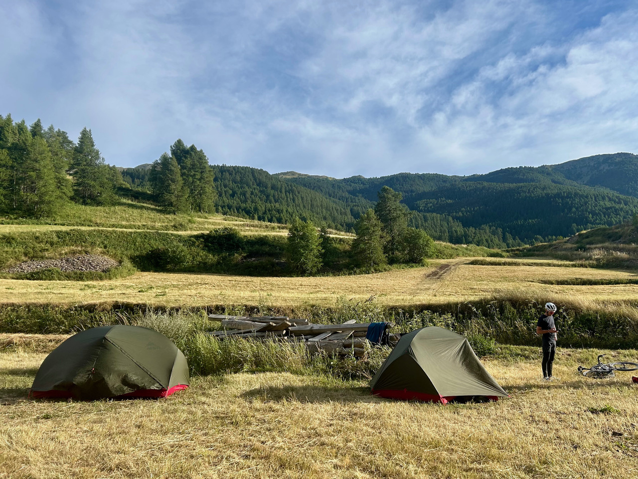 Logistically, it's minimalist and efficient: no stove, no freeze-dried food. "We wanted to travel light and stop and eat just about everywhere, to support the local economy." Two tents for three, a few nights camping, and sometimes unexpected bivouacs, like in Crévoux: "The owner of the restaurant offered to let us pitch the tent in his meadow. Breathtaking views!"