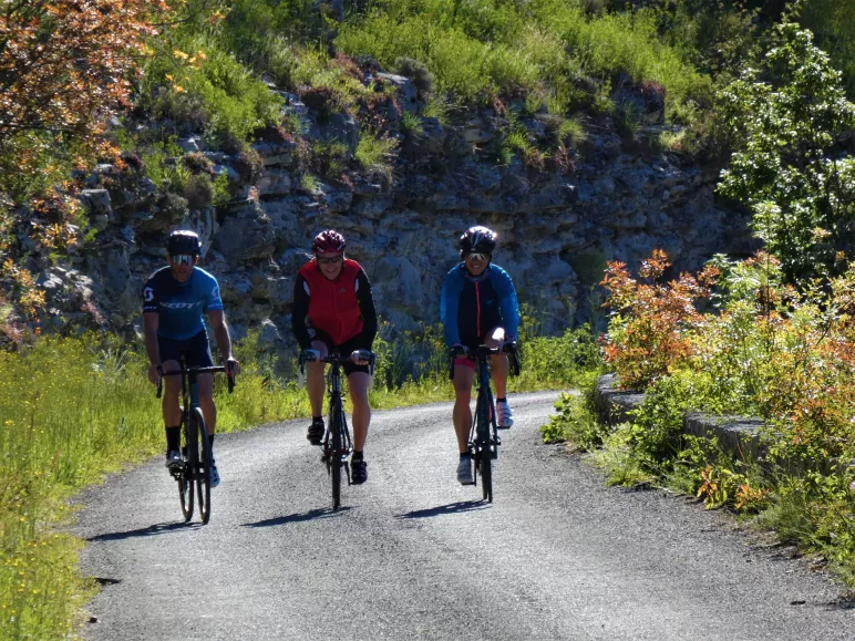 - Montée de Chabre: Culminating at an altitude of 1300 m, the Montée de Chabre is a cyclotourist's paradise with a gradient of around 12% in places! The climb covers a distance of 12 km, with a difference in altitude of 690 m between the gorge road and the tarmac limit. Magnificent panoramic views of the Ventoux, Écrins and Montagne de Lure