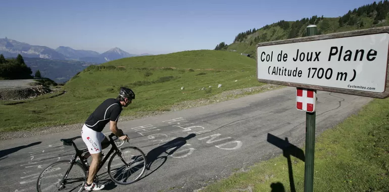 • The Joux-Plane pass : a regular on the Tour de France, it is formidable, whether on the north side starting from Morzine or on the south side starting from Samoëns. An average slope of nearly 6.8% on the Morzine side and 8.7% on the Samoëns side, with peaks of over 10%!