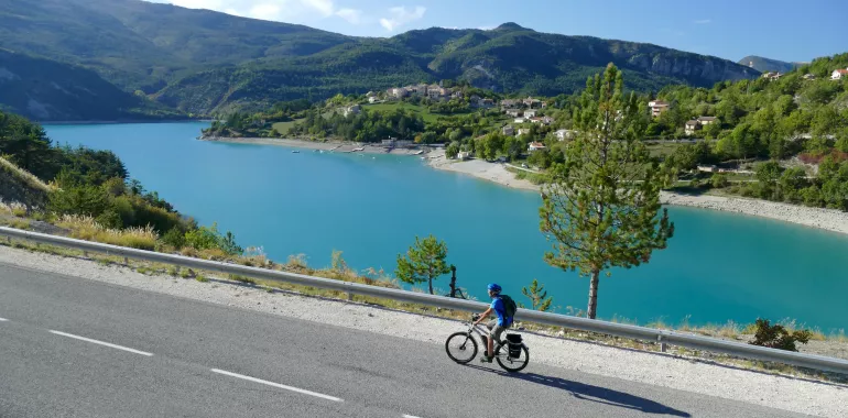 The P’tites Routes du Soleil® offers you a lovely cycling trip here, taking you from the département, or French county, of Alpes-de-Haute Provence to that of Alpes-Maritimes. Leaving Saint-André-les-Alpes, you then ride beside Castillon Lake, going via Saint-Julien-du-Verdon, a picturesque village full of Provençal charm. Next, you climb to reach Chaudanne Lake before continuing on to the Col de Saint Barnabé (a pass at 1,365m). There follows a rapid descent leading to the village of Saint-Auban. Factor in a little detour to look at the Clue de Saint-Auban, a deep, enchanting canyon.