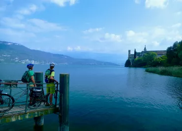 If you've still got some juice left, it would be worth putting in a little effort of 830 m at 9% to climb up to the Belvédère de la Chambotte at 725 m altitude to enjoy an exceptional 360° panorama of Lac du Bourget and the surrounding peaks.