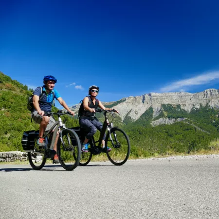 The 12.6 km ascent of the Col de Fontbelle will take place in 2 stages: the first up to a first intermediate pass, the one with the funny name of Hysope. The gradient will be very steep - 2.3 km at 8% - as you wind your way up to Mélan. You'll be able to take a breather as you leave the village, but you'll have to climb a little more - 625 m at 7.5% - before reaching the Col de l'Hysope (1236 m). Take in the magnificent scenery of the Vallée des Duyes and the imposing Crête de Géruen. All that remains is for you to tackle the second part, which will be easy and fairly short (around 2.4 km), in a forest setting, to reach the Col de Fontbelle.