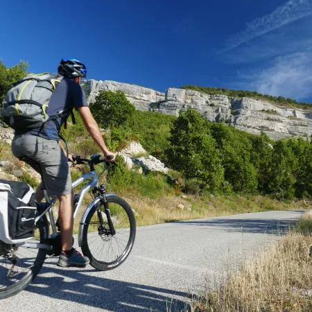 Cycling the Route des Pierres écrites © Lionel Terrail - Grandes Itinérances