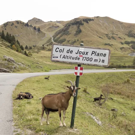 In the Jura, French-speaking Switzerland and the two Savoy regions, the term "Joux" refers to a wooded mountain. This is no longer the case at the summit of the Col de Joux Plane, located in an alpine pasture zone.