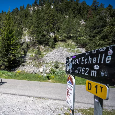 From Bardonecchia in Italy (at the exit of the Fréjus Tunnel), the ascent is irregular. The first 1500 meters are fairly easy, with an average gradient of 2%. You'll work up a sweat on a slope that steepens to between 5.5% and 6.5% for 1400 m as far as Melezet. A flat area followed by a short descent will allow you to tackle the next part of the climb more calmly: 1.1 km at 6.5% to Pian del Colle. Then a gentle slope of 900 m at 3.5% takes you to the old border post. From here, the most difficult part of the climb begins: 4.3 km on an average gradient of between 6 and 8.5%, divided into a succession of 6 switchbacks. At the tenth kilometer, you'll reach the highest point on this slope at 1779 m altitude, and cross an intermediate pass, the Mauvais Pas. A short descent, followed by a slight false flat rise, will bring you to the Col de l'Echelle at 1762 m.