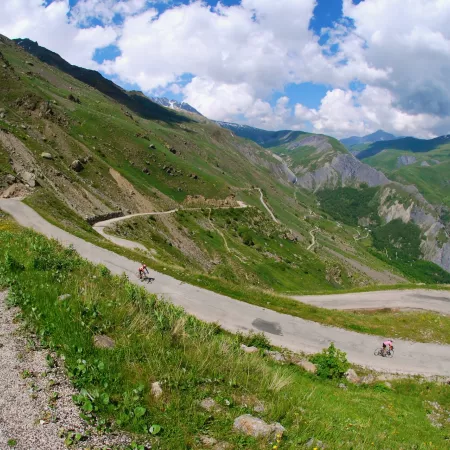 The Col de Sarenne - 1999 m - is a somewhat confidential pass. The reason: Alpe d'Huez, its close neighbor, totally overshadows it. Yet this quiet, pastoral route through a protected natural area is still relatively unspoilt. However, the 12.9 km ascent will still be tough with its 8% average gradient.