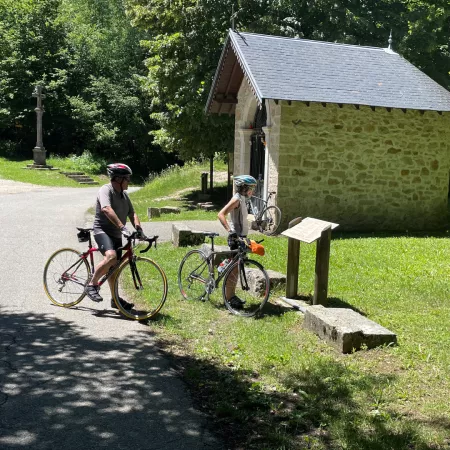 The Col du Banchet is discreetly located in the southernmost part of the Mont Tournier range, which presents the appearance of an impassable wall (the A43, which passes just a few hectometres away, has found no other way of crossing it than through the long Dullin Tunnel). The Petites Routes du Soleil route will take you to the foot of its final section, which will push you to make a big effort over 5 hairpin bends at a steady 8% average gradient. A pretty chapel is located at the summit at an altitude of 590 m.
