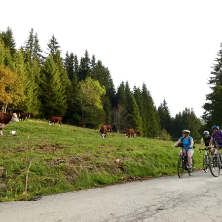 The Col du Feu - 1120 m - is located in the Vallée Verte in the Massif du Chablais. The slope is fairly short from Orcier at 6.1 km. Beware, this will be a fairly strenuous climb at an average of 7.5%, but in a pleasant setting with Lac Léman in the background. At the top of the Col du Feu, there's a fine view of several peaks in the Massif du Chablais, including Mont Billiat (alt. 1894 m).