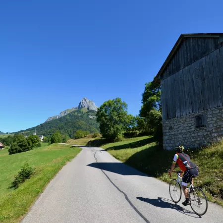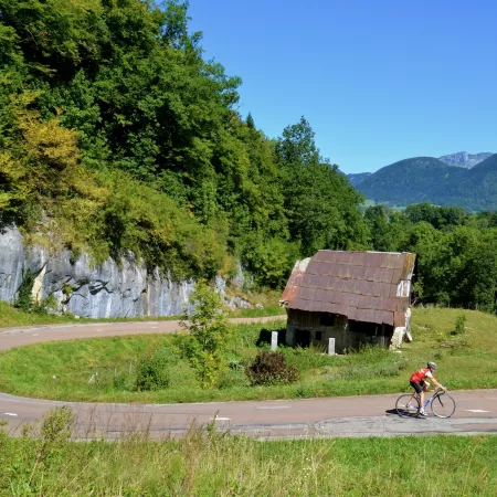 From St-Pierre-d'Albigny, expect a short ascent of 7.8 km with an average gradient of 7%, which suggests that you're going to have to work at it... After a hairpin bend that will help you rise quietly above the village, it's a succession of 14 hairpin bends where the average gradient, fairly regular, won't drop below 7.5% until the Col du Frêne. On the other hand, you'll gain fine views of both the Combe de Savoie and the impressive Dent d'Arclusaz, one of the Massif des Bauges' landmark peaks