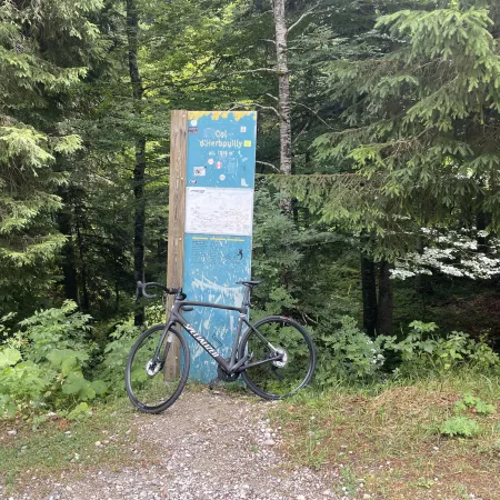 On leaving the belvedere, the slope takes over again, with 940 m at 5%, followed by 910 m at 3%. Don't get carried away on this fairly easy section, though, as the final climb is terrible: 470 m at 9.5%, followed by 725 m at 8.5%. You'll then reach the Col... de Chalimont - 1365 m -, an intermediate pass at 185 m with an additional 5 m D+ from the Col d'Herbouilly - 1370 m. The passes are located in the middle of the woods and won't offer you any views.