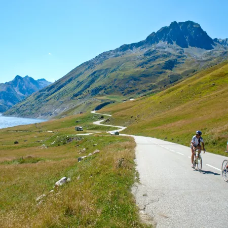 Arrived at the pass, savor these exceptional landscapes again, before tipping over into the Romanche valley towards the Isère and the Grand'Maison dam and lake, then Bourg-d'Oisans... waiting perhaps for the climb to Alpe-d'Huez.