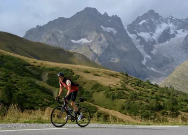 There's no flat, no vegetation. There are no flat areas, no vegetation to protect you from the wind or the sun, and few hairpin bends in the middle section to get you going again... either it'll be a test of strength between you and the slope, or you'll decide to climb pianissimo to enjoy sensational views over the Guisane Valley and the Massif des Écrins.