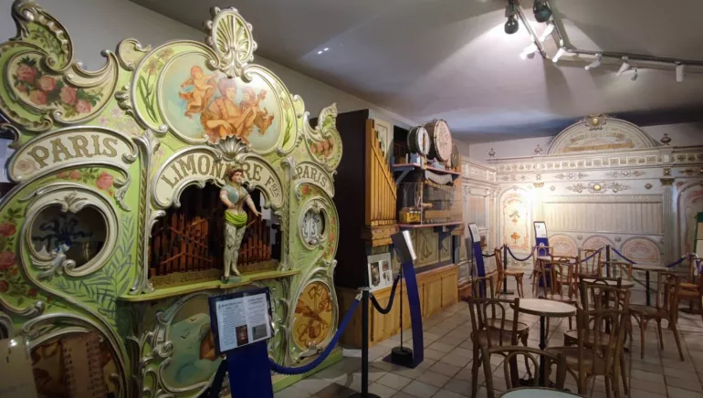 In the Imperial Gallery, linking the two buildings: pedagogical area, temporary exhibition and a reconstituted street presenting a collection of barrel organs from their origins to the present day.