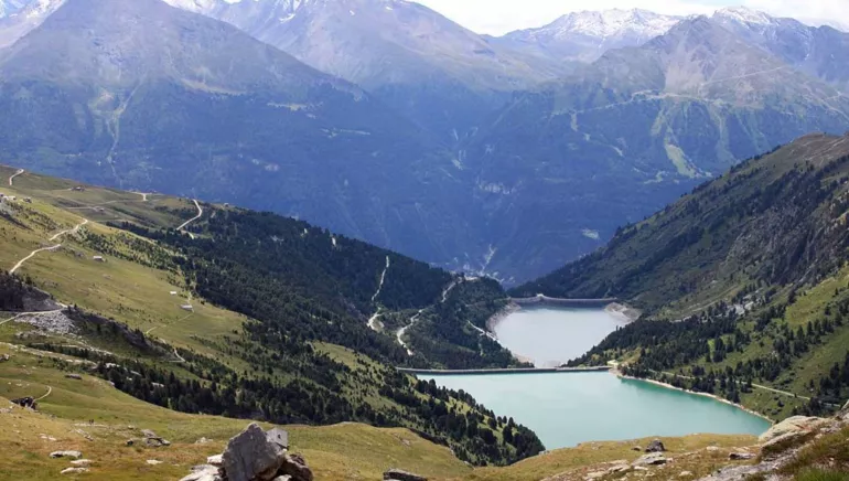 The water is turbined in a small power station called "Plan d'Aval", hidden at the bottom of the talweg, before being discharged into the Plan d'Aval reservoir.