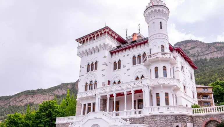 This imposing neo-Gothic building is reminiscent of King Ludwig II's Neuschwanstein castle.
