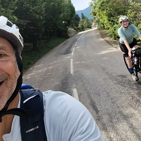 Je m'appelle Gianluca, j'ai 54 ans, et je suis concierge. Le vélo de route est ma passion depuis de nombreuses années et j’aime particulièrement explorer les montagnes. Ce nouveau challenge à vélo, je l'ai partagé avec ma copine Juliette.