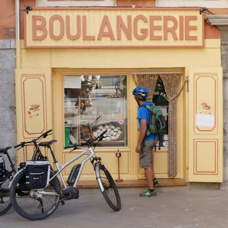You can find all our partner accommodation (hotels, B&Bs, group accommodation, campsites) and restaurants under the section ‘‘Cycle route’’ (‘‘Itinéraire’’ in French),