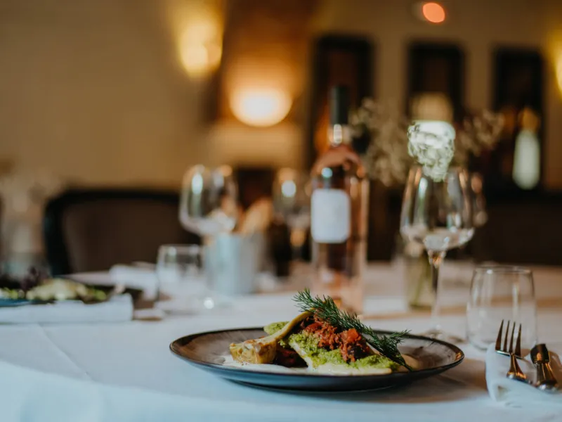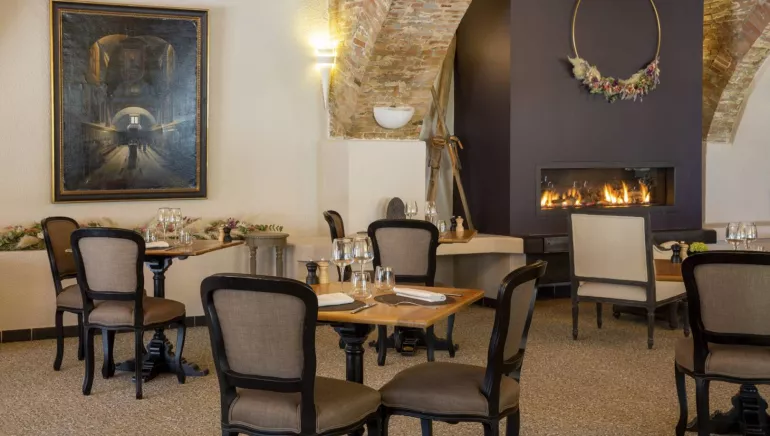 You can park in our private car park, and enjoy a meal as a couple, with friends or colleagues, served in our vaulted restaurant room, which was once the stables at La Robéyère. You can be seated by the fireplace in winter, or on the sunny terrace in summer!