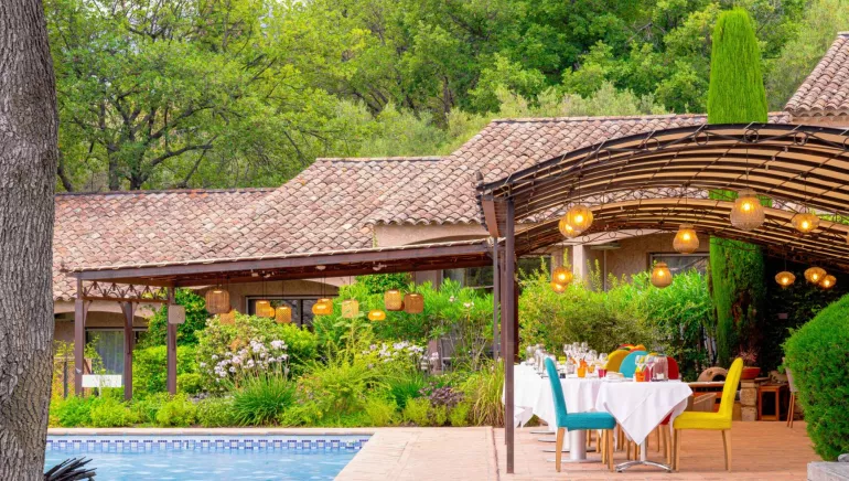 Chef Benjamin Bourgoin's philosophy is reflected in his gourmet dishes, based on fresh seasonal produce sourced mainly from local producers.Enjoy the view from the lovely summer terrace by the pool in the heart of a Provencal park.