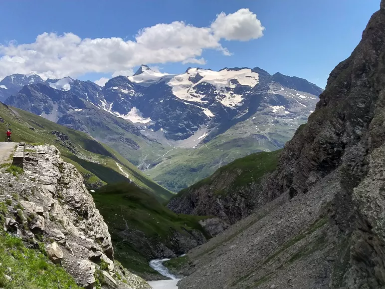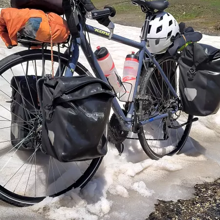 Slow cycling! No record speeds on the climbs with my loaded bike, often at 5 km h when the slopes are at 10% it allows you to really enjoy the scenery, cross marmots or ibex.