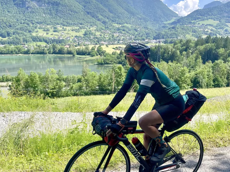 Josépha Cathudal, 32 years old and a great lover of outdoor sports. I'm currently in charge of sports projects. Since the age of 7, the passion for cycling that my father passed on to me has never left me: mountain biking, Vélo-Ecole and Vélo Taf, cyclosportives, l'Ardèchoise en 3 jours (for those in the know), and last year I even joined a women's cycling team. This opportunity enabled me to take part in my first French road cycling championships. A true jack-of-all-trades, today I've found my balance in triathlon and satisfy my need for adventure through bike travel.