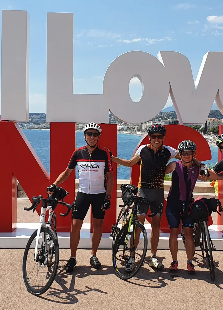 I'm Caroline Hiebel, triathlete and lover of itinerant journeys on foot or by bike... This great cycling trip I did as a team, we started as three cyclists, Lucie, Thierry and myself, then Christophe joined us in Briançon to cover the southern half-route.