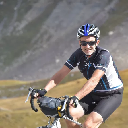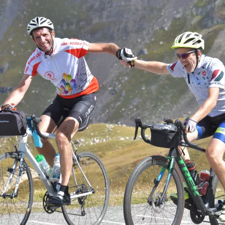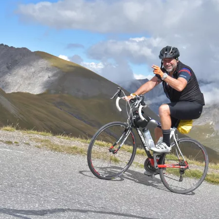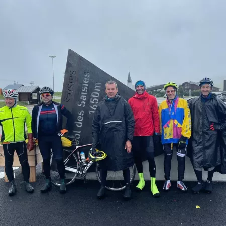 Luckily we had the van. We set off on September 19 and it was raining buckets of water. At the top of Cormet de Roselend, it was 5 degrees, a crazy wind, we had the bar on our foreheads... Thanks to our assistance vehicle, we were able to change and put on warm clothes before the descent. The first two days were terrible, with snow at the top of the Col de l'Iseran. I wore a cap under my helmet, leggings, warm underwear, a fleece, thick gloves... Fortunately, from the third day onwards the fine weather returned, despite chilly mornings between 5 and 10 degrees.