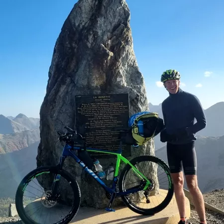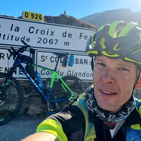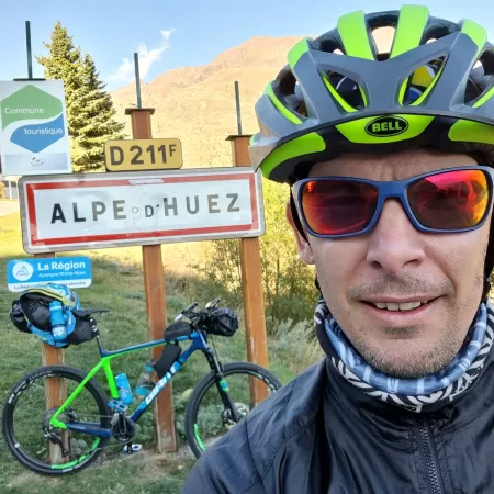 My name is Laurent De Bruyn and I'm originally from Belgium. A masseur-physiotherapist by training, I've been working in France since 2002 and since early 2014 in Val Cenis, as a wellness masseur and rebouteux. I started cycling in 2017, at the age of 39, mainly on the road, although I invested in a muscle bike at the time. My professional activity only allows me to practice in the off-season (spring and autumn).