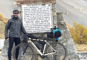 7 days to Barcelona - Turin. Not bad! The day we met him, he was coming from Savines-le-Lac, on the shores of Lake Serre-Ponçon, and going all the way to Turin, via the Clarée valley, the Col de l'Echelle (1762 m) and Bardonnèche. Our Franco-Italian variant of Route des Grandes Alpes®, to avoid the Col de Montgenèvre.