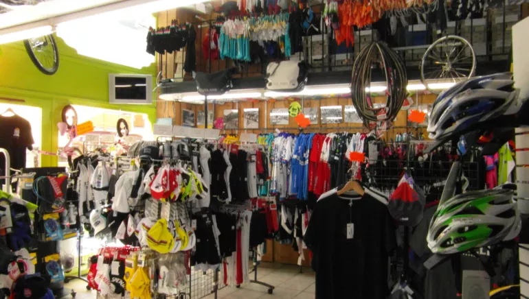 The store sells textiles, dietary products and accessories for top-of-the-range road bikes and mountain bikes through leading brands such as Assos, Bianchi, Castelli, Scott, Specialized, Sidi, Shimano, Pinarello, Mavic, Campagnolo, Enve and Powerbar.